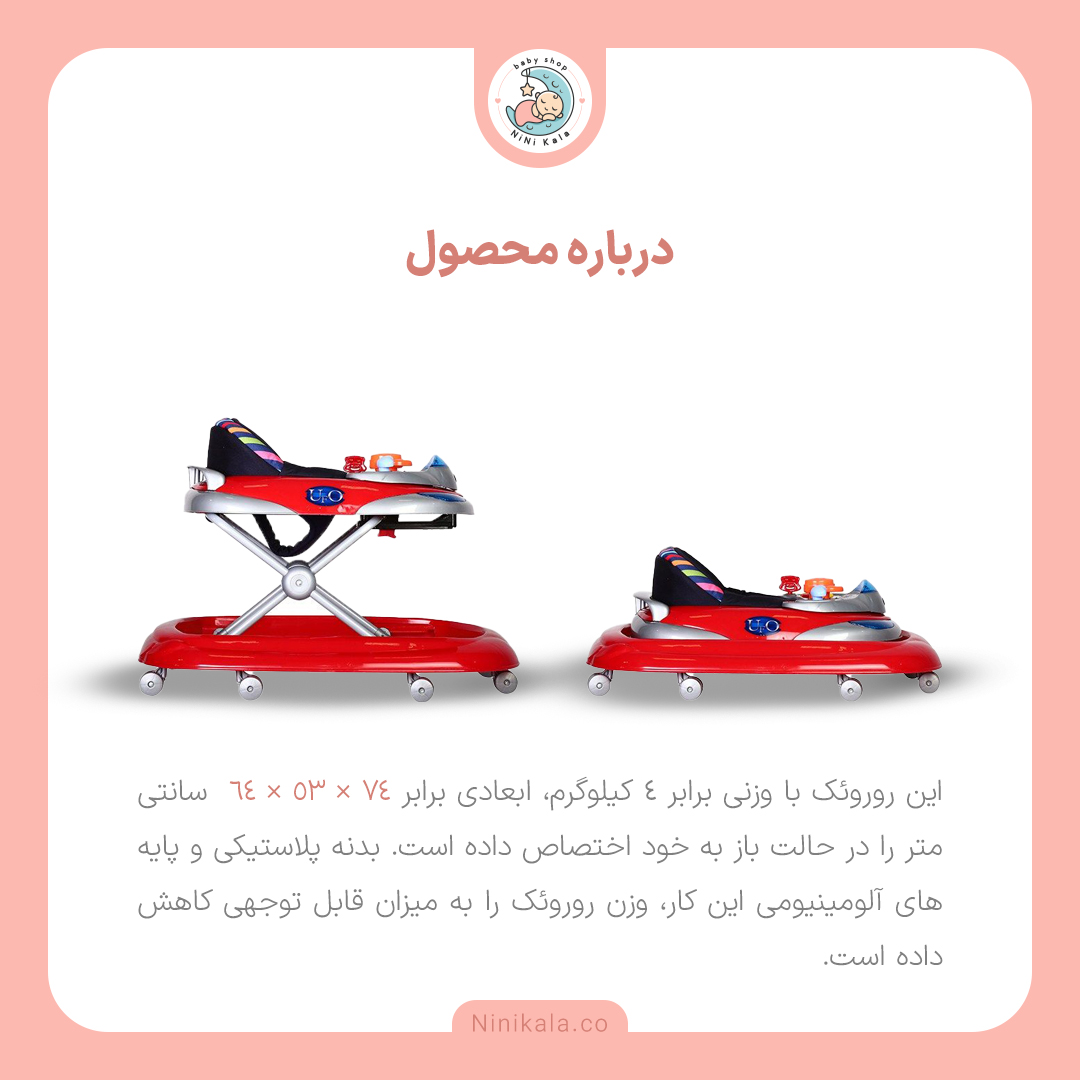 روروئک دليجان مدل ALVAN UFOبرداشتن اولین قدمها برای کودک و والدین شیرین و به یاد ماندنی است. وسایل زیادی برای کمک به راه رفتن کودک وجود دارند که دراین میان اسباببازیهای چرخدار خیلی مناسب هستند. روروئکها وسایل آموزشی و سرگرمکننده خوبی هستند. روروئک «دلیجان» مدل «Stripe UFO» با وزن 4کیلوگرم، به هشت چرخ با قابلیت چرخش 360 درجه مجهز شده، که قابلیت تحمل کودک با حداکثر وزن 12 گیلوگرم را دارد. روروئک دلیجان به دلیل اینکه شبیه ماشین کوچکی طراحی شده، مدل مناسب و جذابی برای پسربچهها است. کودک وقتی در این روروئک قرار میگیرد گویی در ماشین کوچکی قرار گرفته و وقتی سعی میکند پنجهی پاهایش را روی زمین بزند احساس میکند که خود به تنهای این ماشین کوچک را به حرکت درآورده و از تکرار این حرکت حس خوب و لذتبخشی به او دست میدهد. از ویژگیهای این محصول میتوان به قابلیت تنظیم ارتفاع در سه حالت، کنسول بازی موزیکال همراه با چرخ، قابلیت جمعشدن و نشیمنگاه نرم و راحت اشاره کرد.